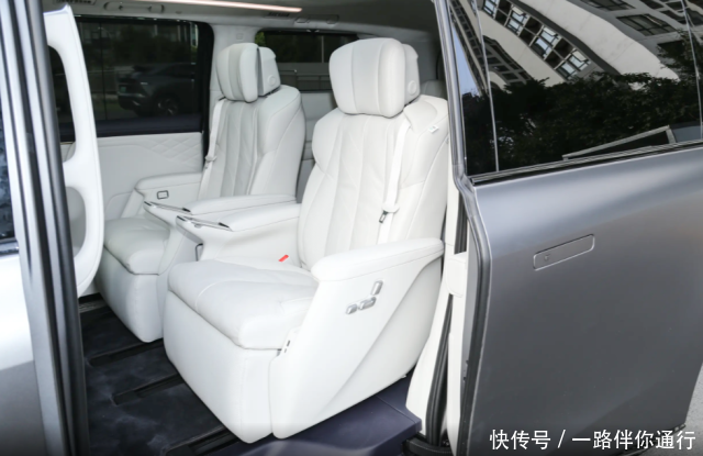 车身侧面就是一款经典MPV该有的样子,沿袭家族设计语言,车身长度5260mm,轴距3160mm,笔直腰线贯穿车身,加入悬浮式车顶设计后为车身增添一定灵动气息,看起来不至于太过笨重,前排车门配备隐藏式门把手,后排配备电动侧滑门,开启侧滑门的瞬间,迎宾光毯便投射到了地面,此外该车还有一个超级迎宾模式,整个空气悬架可以平稳下降60mm,让第二排乘客实现更加从容的上下车。